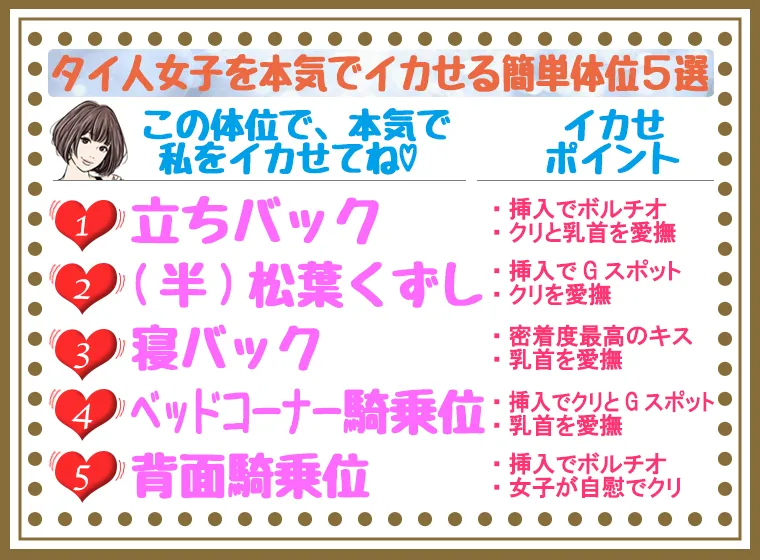 タイ人の女の子を本気でイカせるSEX体位5選、いかがだったでしょうか。